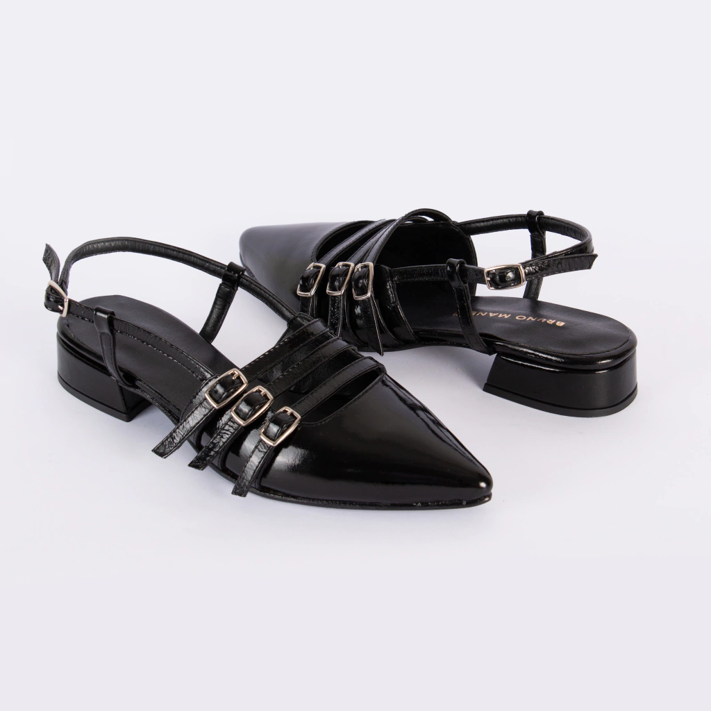 Material: Cuero Charol | Color: Negro | Altura de taco: 3 cm | Altura de base: 0,5 cm