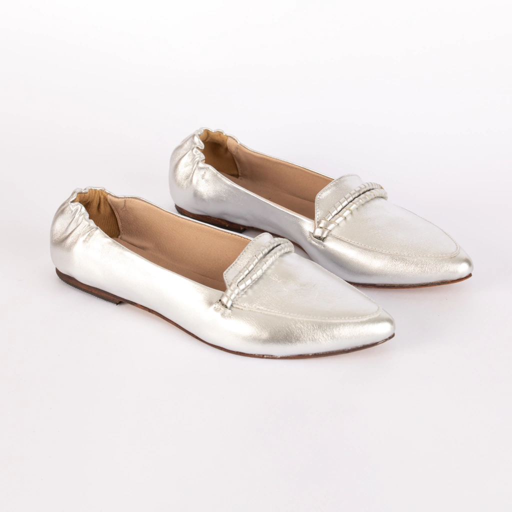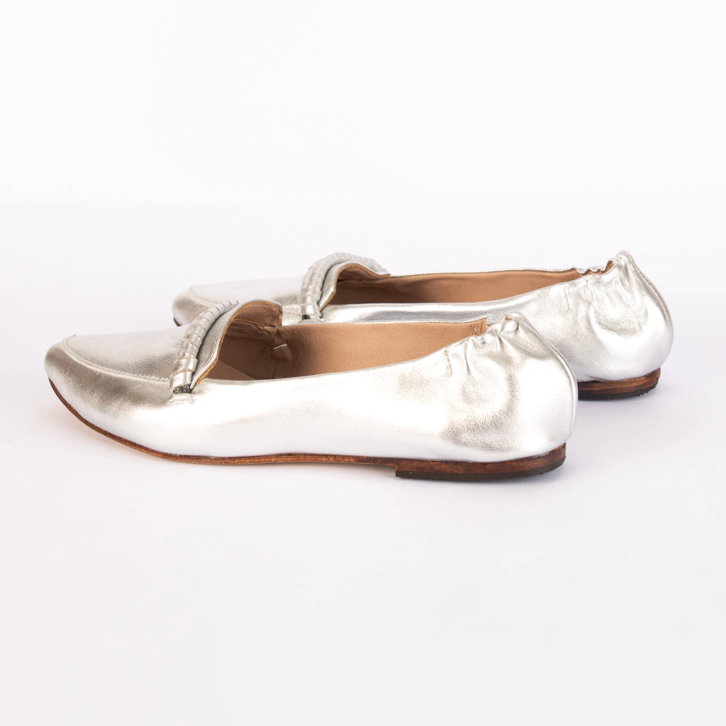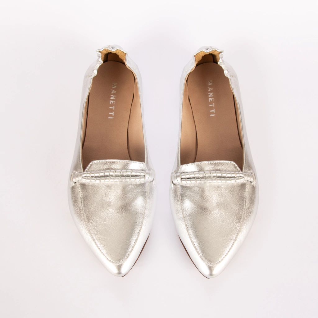 En su tono plata metalizado. el mocasín Weini, es la definición de lujo sutil. Su silueta minimalista se realza con el brillo elegante del cuero, aportando luz y personalidad a cualquier look. Ligero, versátil y con ese toque moderno que distingue a MANETTI, es el calzado perfecto para pasar del día a la noche sin cambiar de estilo.